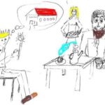 Die neuen Schöpfungen waren auch nicht annähernd so schön wie die ersten aus den frischen Farbatomen. Es war ein Kreislauf, ein Wirbel, der nach unten, ins Dunkel, in die Traurigkeit führte. Das Wesen hielt immer öfter in der Arbeit inne, hatte nicht mehr den Spaß und Kathi bemerkte, dass dem Wesen nun schon Tränen über die Wangen liefen. Das war so traurig, dass auch Kathi anfing zu weinen. Kathi wusste, warum es so war, und wollte dem Wesen helfen, wieder glücklich zu werden.