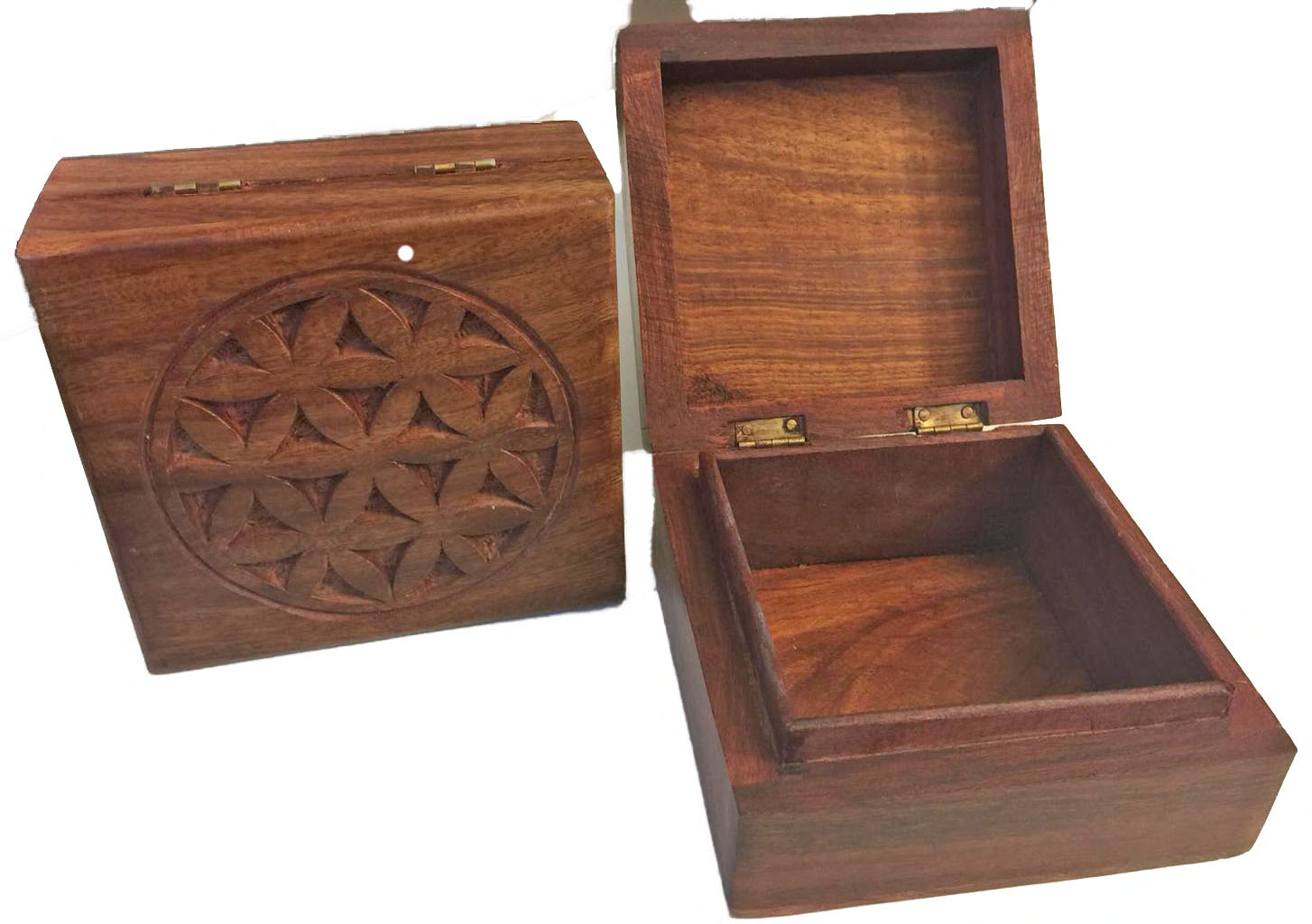 Blume des Lebens Holzschatulle mit Klappdeckel